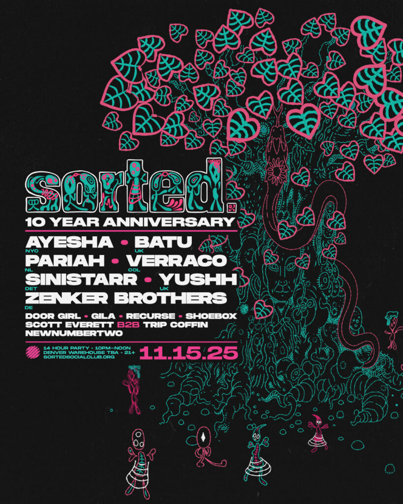 The Sorted 10 year is a collaboration with the 10 year anniversary of the Timedance label - which has been influential to say the least! We're pleased to be hosting Batu, Yushh, and Veracco to celebrate this milestone for Timedance.